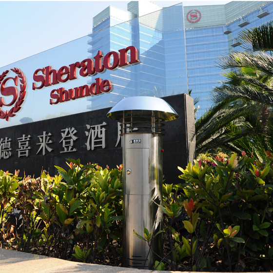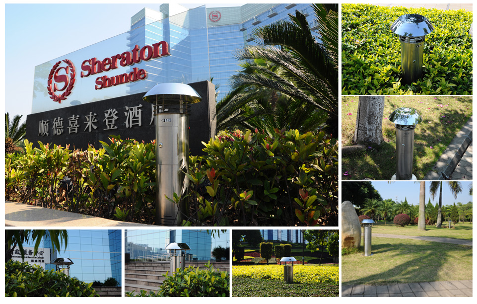 周边绿化带、水域 酒店,特别是度假村的植被覆盖率达60%~80%以上,周边多伴有水域,这是最易滋生蚊虫的环境,有效控制酒店、度假村周边区域的蚊虫,能减少蚊虫对酒店、度假村内部环境的侵扰。 适用型号:H-X5草坪灯式系列。 产品特性:360°防水;整机不锈钢制作;风机防堵转保护,兼具灭蚊、照明功能 。 针对复杂多变的户外环境,高科达GOKDA户外机型可充分发挥其优势。采用沿水域、植被地带密集布控的原则,可有效控制酒店、度假村外部环境蚊虫。