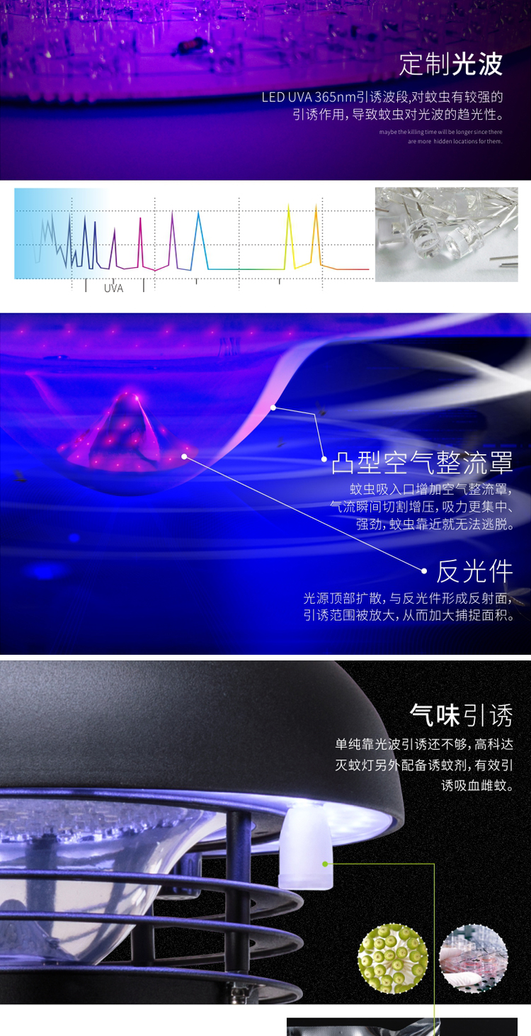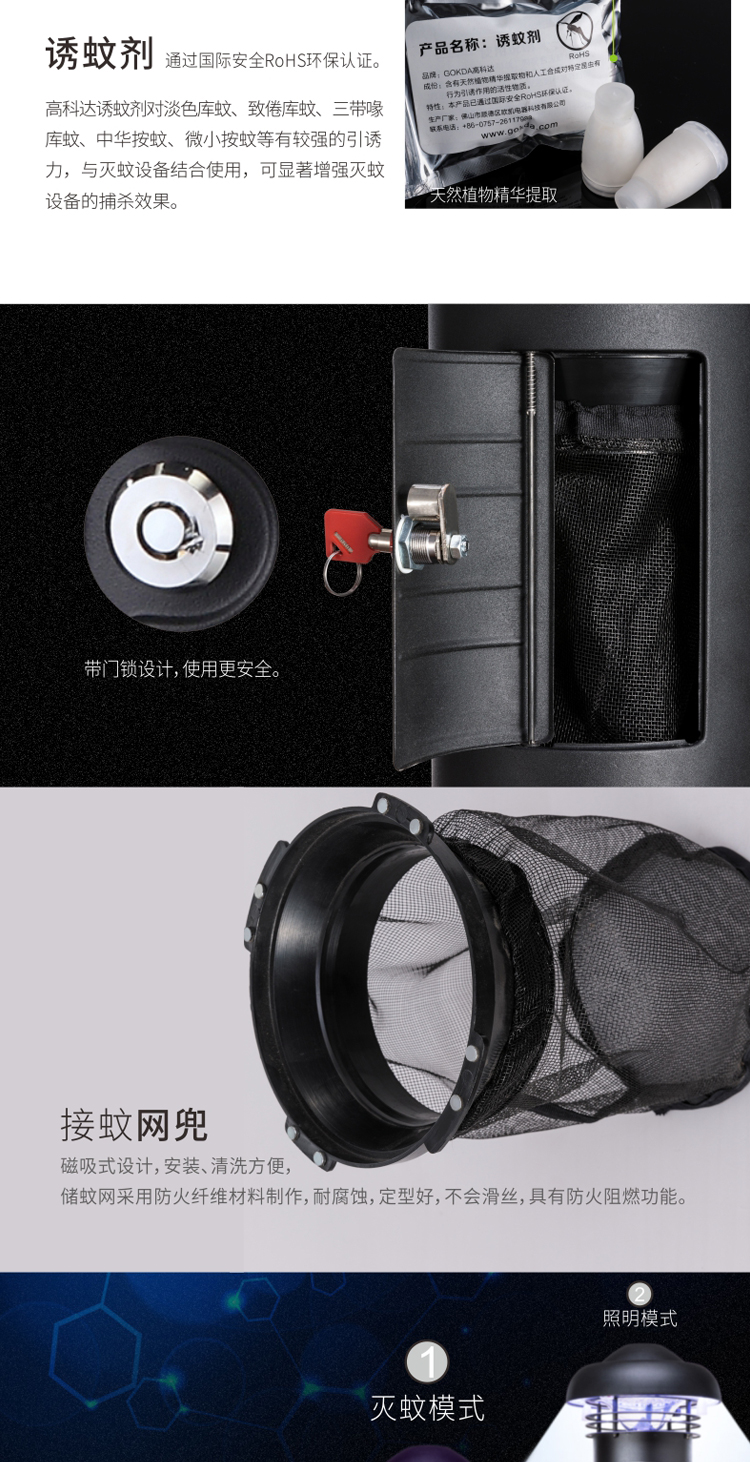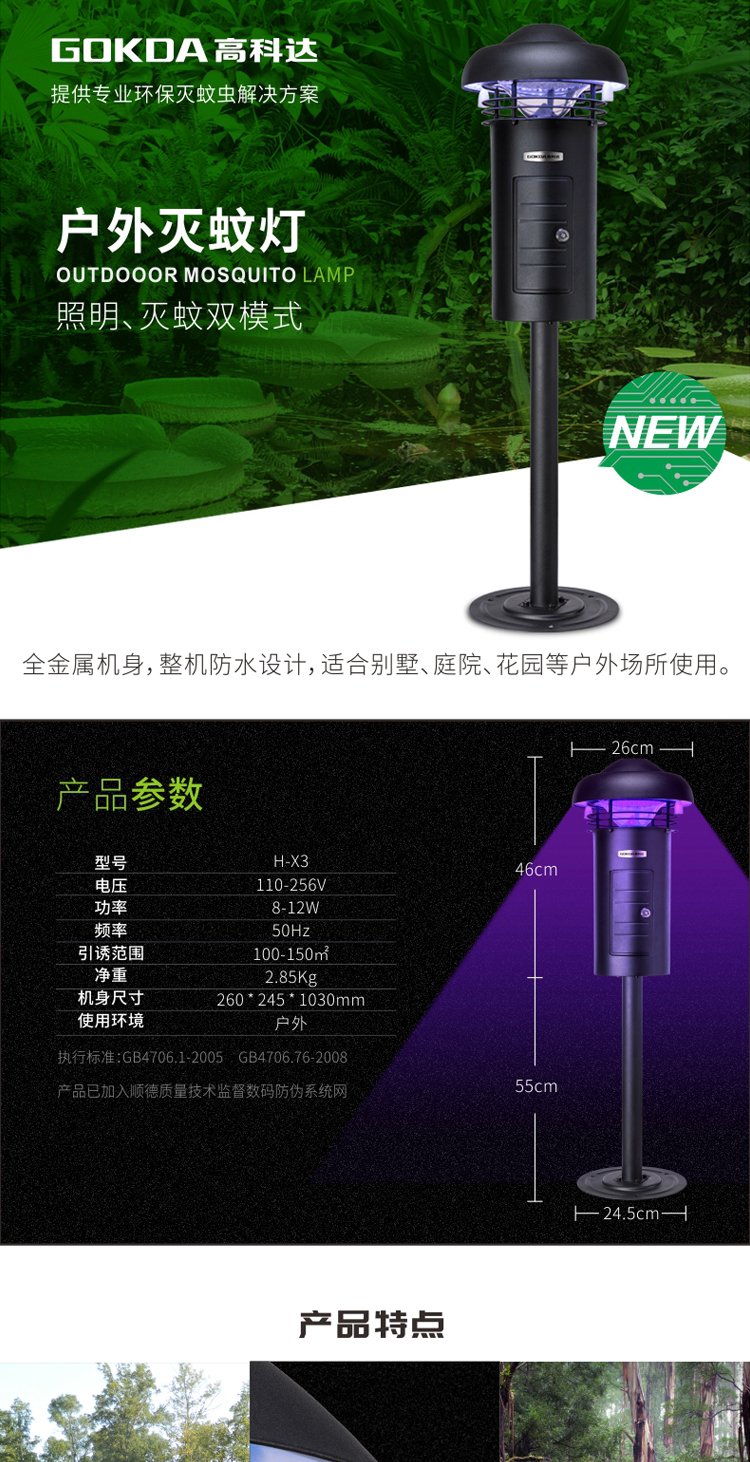 功 率: 8-12W 频 率: 50Hz 电 压: 110-256V 净 重: 4.05KG 捕捉范围: 100-150 ㎡ 颜 色:黑色 机身尺寸:170X245X1030mm 升 降 柱:550mm 底盘直径:250mm 内箱尺寸: 310*310*560mm 外箱尺寸: 645*328*578mm 包装数量: 2台/件