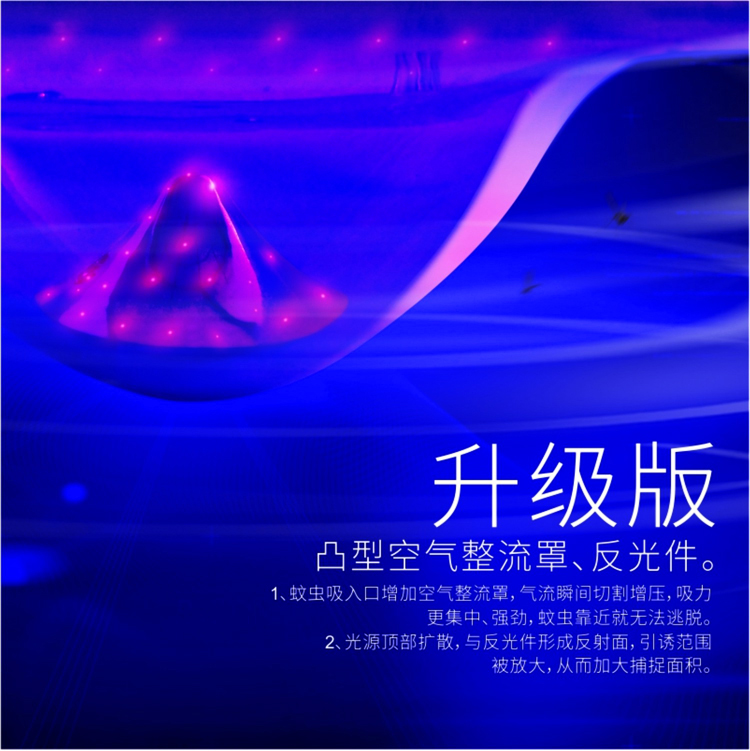 5、采用定制360-400nm波段的LED UVA诱蚊灯珠。稳定性强,使用寿命长。