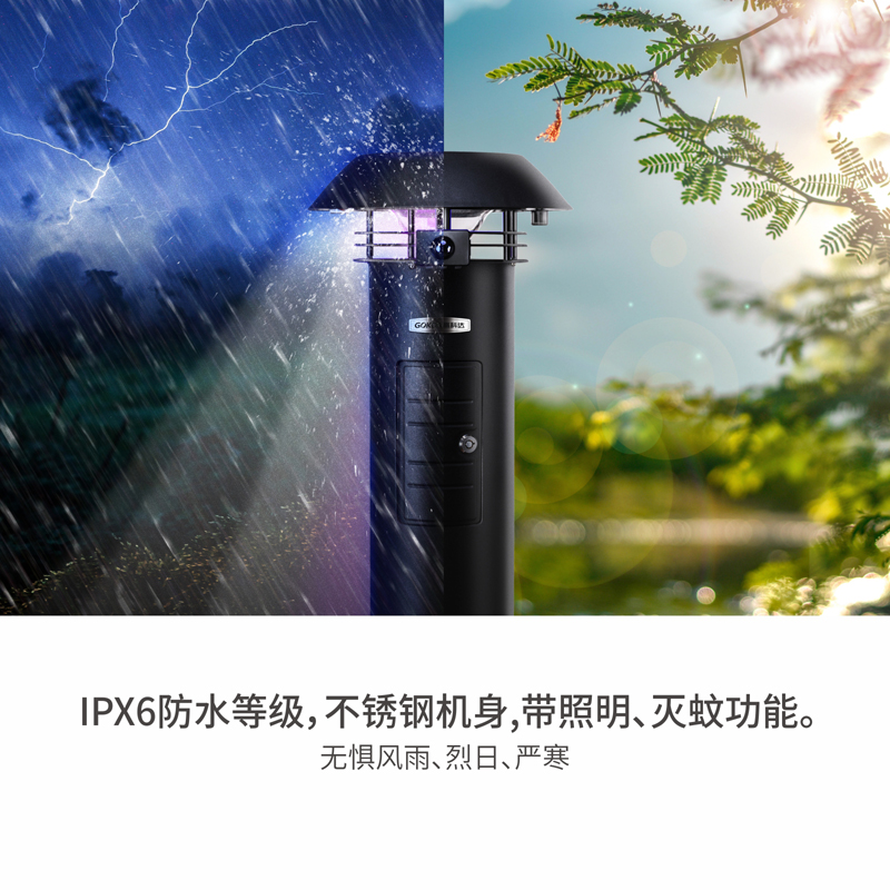 9、IPX6防水等级,不锈钢机身,无惧风雨、烈日、严寒。