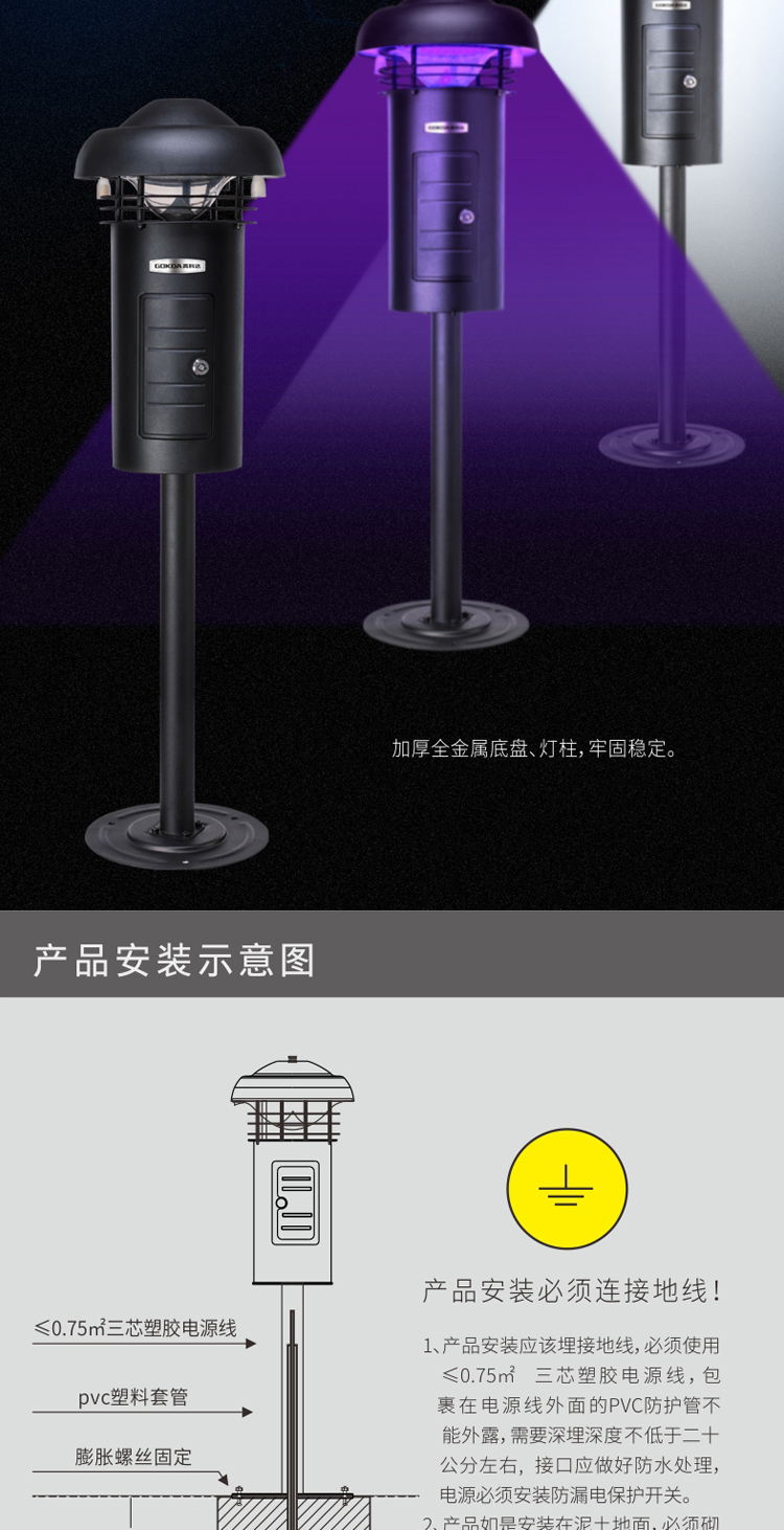 功 率: 8-12W 频 率: 50Hz 电 压: 110-256V 净 重: 4.05KG 捕捉范围: 100-150㎡ 颜 色:磨砂黑 机身尺寸:170X245X1030mm 柱 子:550mm