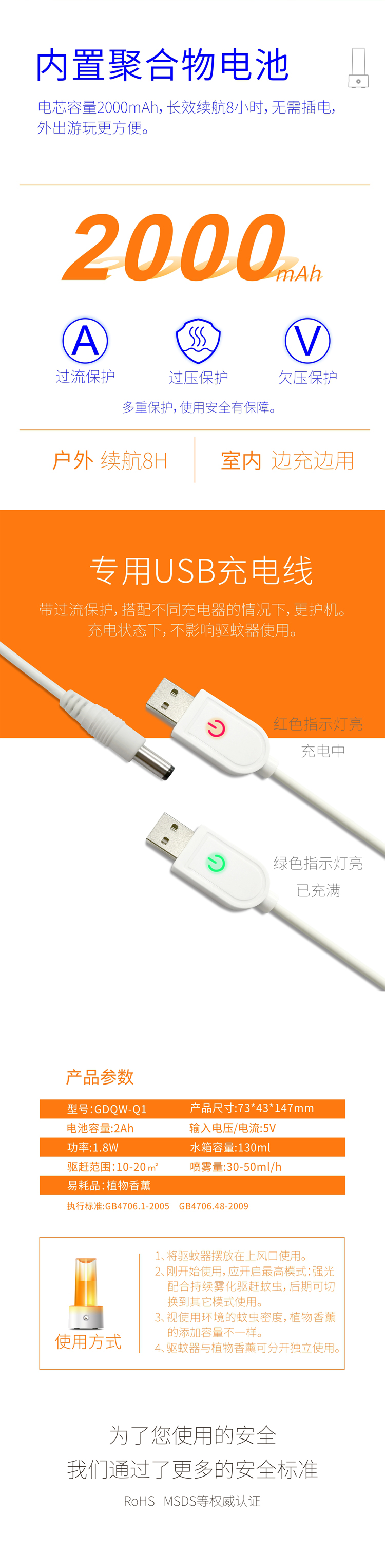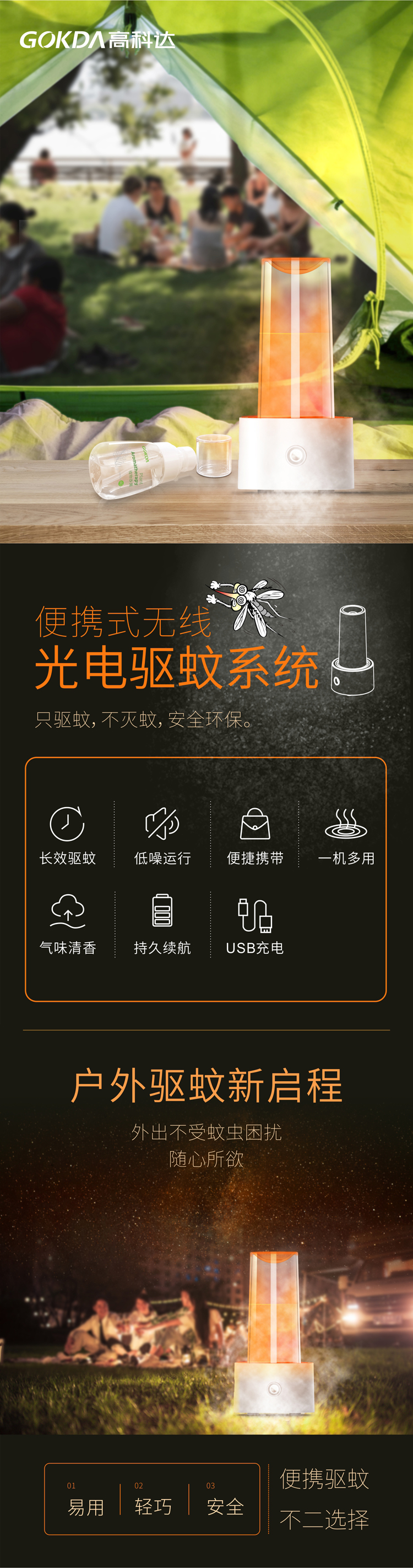 2、机身小巧,自带电源,携带方便,远离蚊虫叮咬。