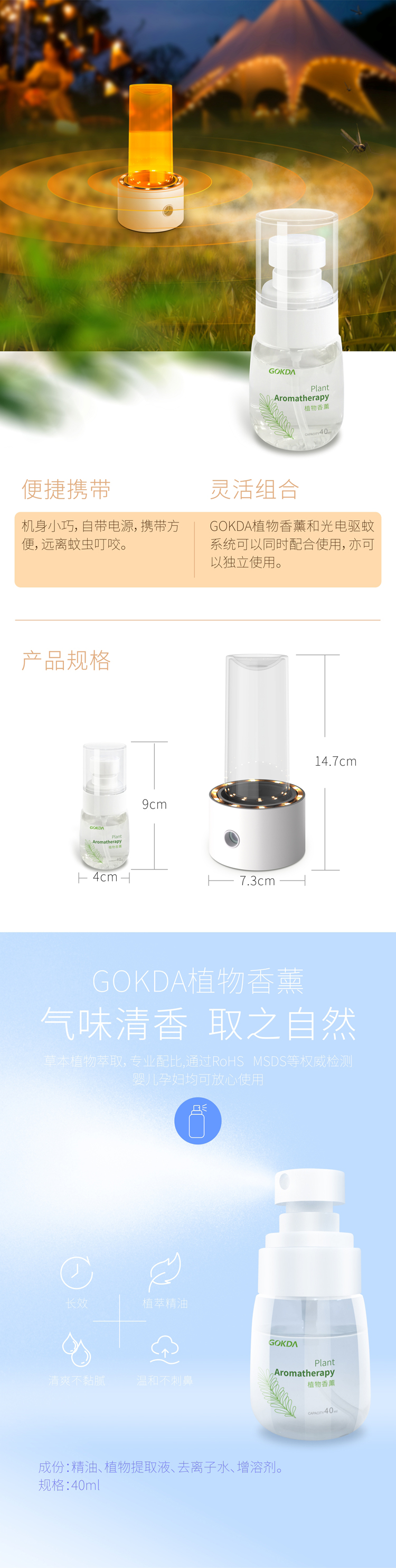 3、GOKDA植物香薰和光电驱蚊系统可以同时配合使用,亦可以独立使用。
